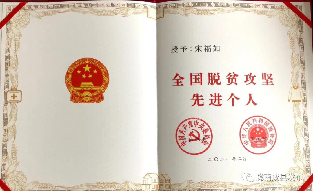 2月25日上午,黨中央、國務院在人民大會堂召開全國脫貧攻堅總結表彰大會,表彰一批全國脫貧攻堅個人和集體。甘肅成縣民豐公司董事長宋福如獲“全國脫貧攻堅個人”殊榮。